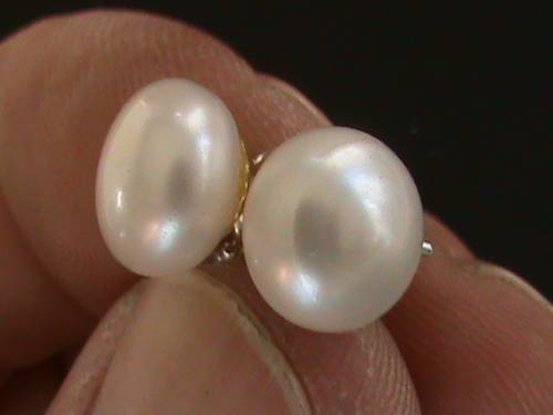 NATURAL PEARL STUDS. SOLID STERLING SILVER. LARGE 9.3 MM ROUND