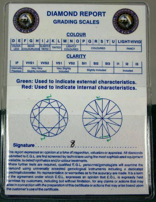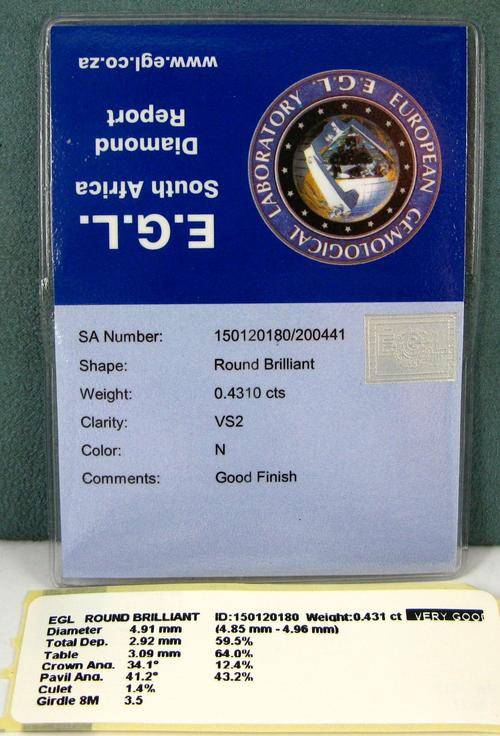 Natural Round Brilliant Cut Diamond E. G. L. Certificate 0,431 Carat N VS2.