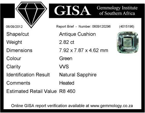 Natural Sapphire 2.82 carat - Antique Cushion cut - green colour
