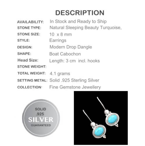 HANDMADE NATURAL SLEEPING BEAUTY TURQUOISE EARRINGS