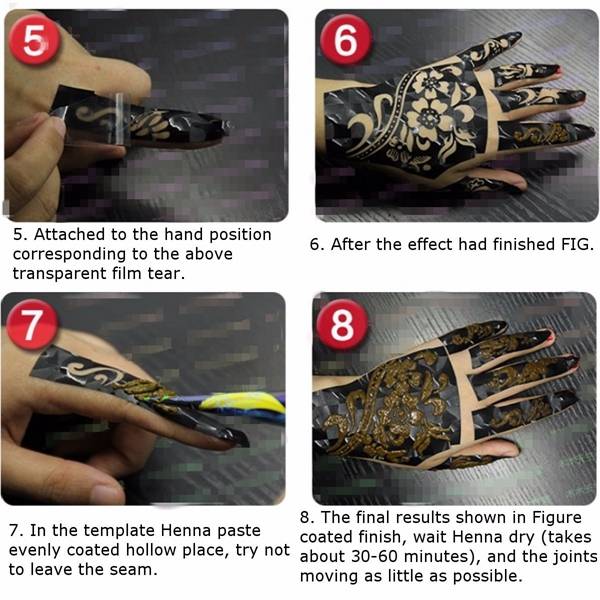 3. Fill the tattoo with henna, Mehndi, and remove the color sheet and let