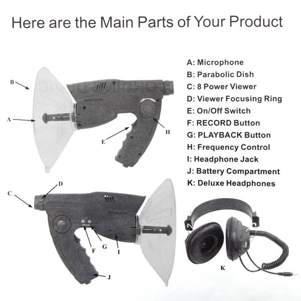 9. Parabolic sound catcher which can hear 300 feet (100 metres) away.