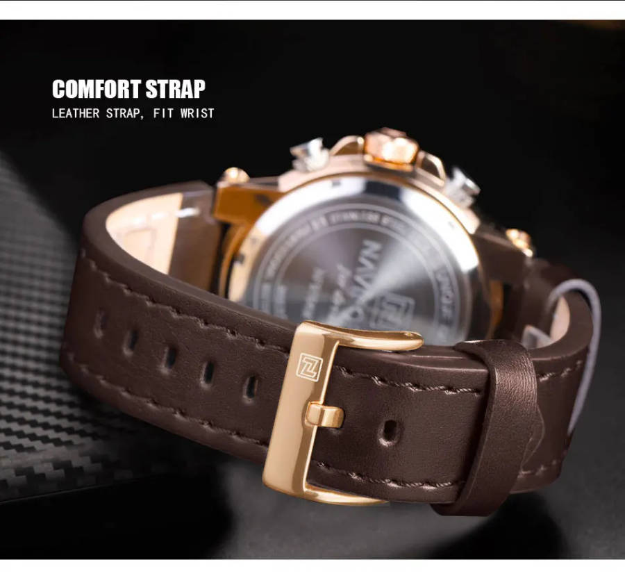 NAVIFORCE MENS DIGITAL CHRONOGRAPH GENUINE LEATHER BROWN WATCH