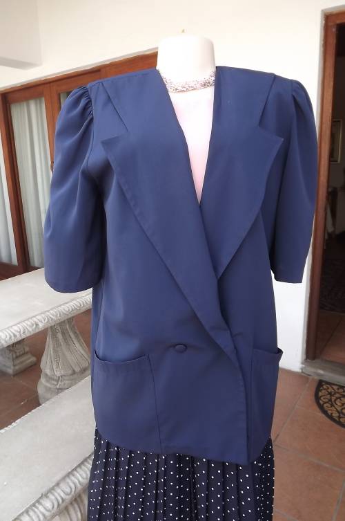 Navy light weight summer jacket double breasted with short sleeves.Size 38/14 by RAOUL