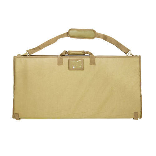 The shooting mat folds into a compact size (18” x 36”) and has a carry handle & shoulder strap for easy transportability. The shooting mat unfolds to a large 6ft x 3ft shooting platform, providing at comfortable ½” thick padded surface for the shooter, even when placed onto uneven gravel/dirt surfaces.* the outside shell is constructed from heavy duty pvc fabric.* non-slip elbow & knee surfaces, to help the shooter holder their position steady for that super accurate shot!* 4 panel foldable shooting mat, with two quick snap buckles to help hold the panels closed when transporting in the folded configuration.