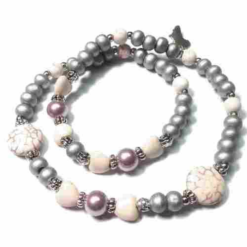 Necklace, European style Necklace, Nacre cultured pearls and Howlite Heart Necklace
