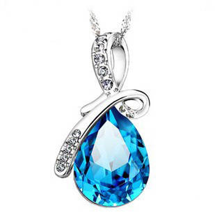 NECKLACE SILVER, BLUE PENDANT, 45cm TWISTED SINGAPORE CHAIN