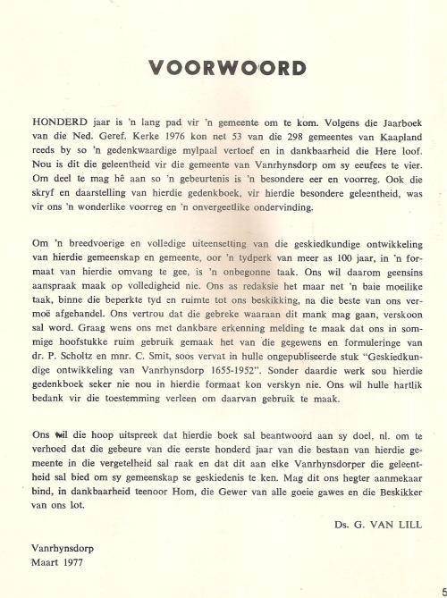 Ned. Geref. Gemeente Vanrhynsdorp 1877-1977 Red. Ds. G. van Lill