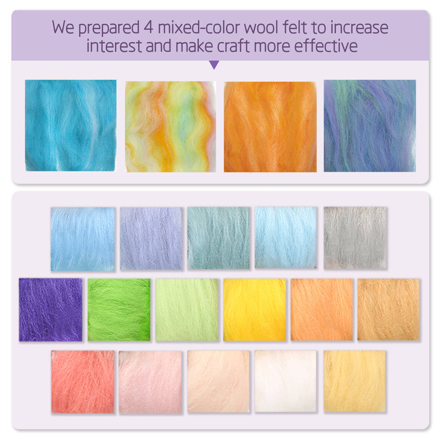 4. Wide Application. Ideal for needle felting and wet felting. Perfect of jewelry, art bat making, doll making, soap making, dryer balls, any craft and child's ideal Christmas gift.