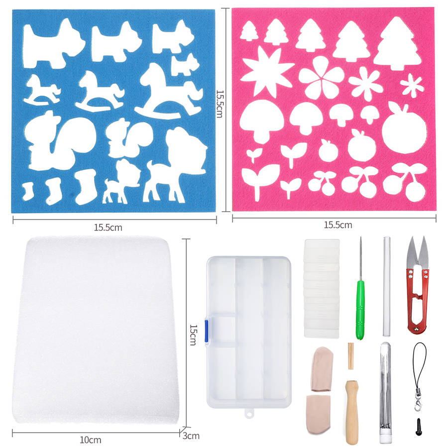 1 x Set of Need Felting Kits (Including 8Pcs/Set Needles, 1 x Scissors, 1 x Wooden Felting Handle, 1 x Phone Lanyard, 1 x Awl, 2 x Leather Finger Cots, 1 x Glue Stick, 12 x Doll Eyes, 2 x Felting Wool Model)