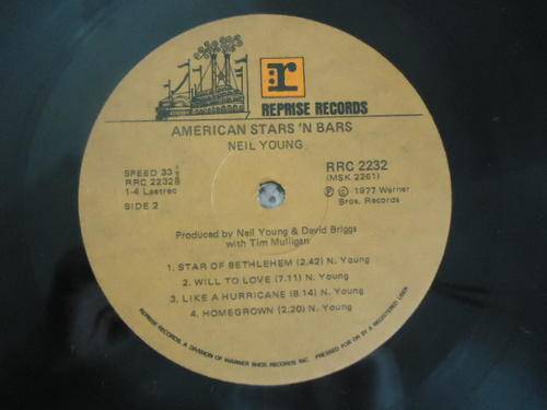On offer is this "NEIL YOUNG "AMERICAN STARS 'N BARS" 1977 REPRISE STEREO LP SUPPLIED WITH ITS ORIGINAL INNER SLEEVE IN EXCELLENT CONDITION