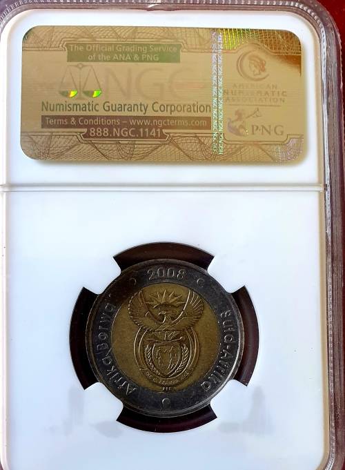 ON AUCTION: 1X NELSON MANDELA 2008 R5. . AU 58. NGC GRADED.