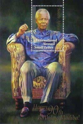 A SET of TWO MNH STAMPS AND A SOUTH AFRICA 2008 R5 BRILLIANT UNCIRCULATED COIN TO COMMEMORATE HIS 90th BIRTHDAY , TAKEN FROM A BAG OF 400 COINS ISSUED IN 2008