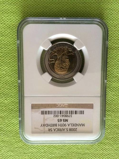 INVEST NOW AND START YOUR OWN NELSON MANDELA COLLECTION WITH THIS NELSON MANDELA 90TH BIRTHDAY R5 HIGH GRADE NGC MS65 COIN.
