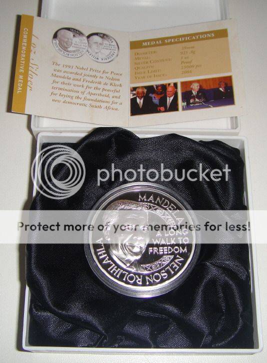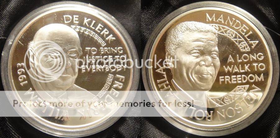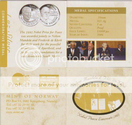 Nelson Mandela & FW de Klerk : Norway Mint : 2006 One Ounce (1 Oz) Silver Medal : Nobel Laureates