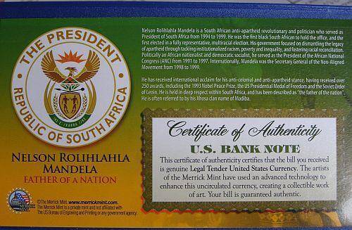 Nelson Mandela *President of South Africa* Legal Tender U.S. $2 Bill
