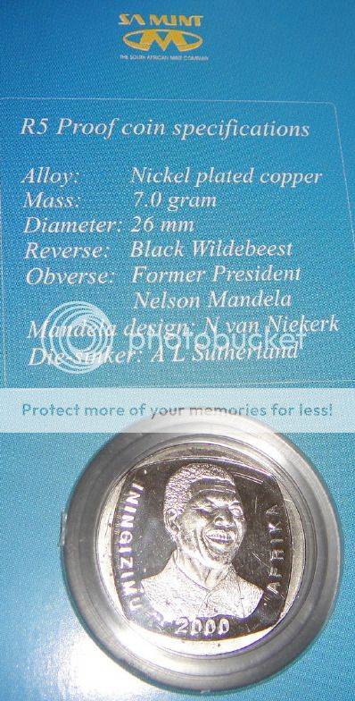 Nelson Mandela R5 struck in PROOF condition : SEALED in ORIGINAL SA Mint CD Holder