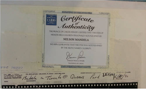 ON AUCTION IS A PHOTOGRAPH OF FORMER PRESIDENT NELSON MANDELA ND WINNIE MANDELA THAT WAS SIGNED BY NELSON MANDELA IN TORONTO IN THE 90S.