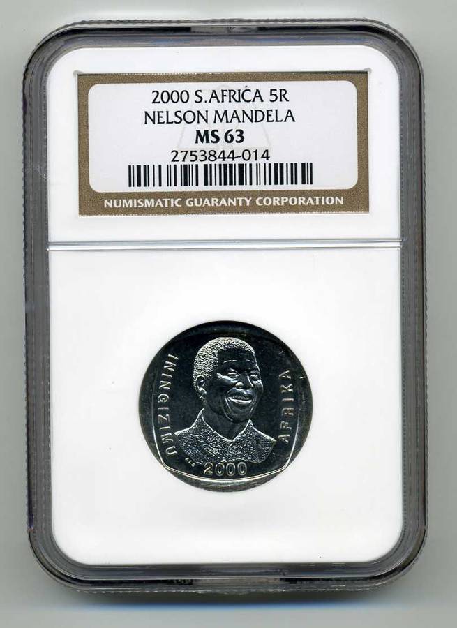 NELSON MANDELA NGC Graded Mint State MS 63 R5 Coin , Year 2000 - graded and sealed by the Numismatic Guaranty Corporation - the best Guarantee in the World .