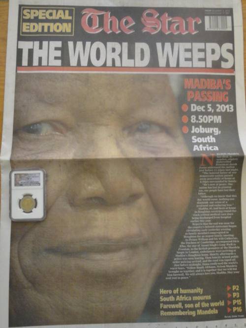 Unread in perfect condition The Star Newspaper from 6th December + NGC MS67 graded 90th Birthday R5 Coin