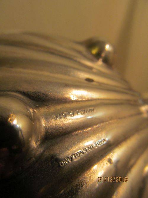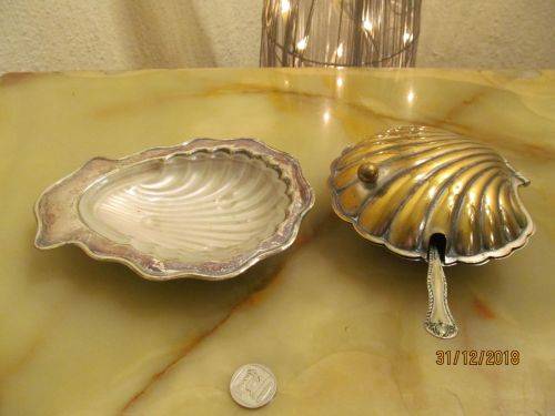 STAMPS/MARKS ETC : THE LIDDED SHELL DISH IS STAMPED UNDERNEATH - "MADE IN ENGLAND, MANCO PLATE" THE OPEN SHELL DISH IS STAMPED UNDERNEATH - "EPNS" THE SPOON IS HANDLE STAMPED - "EPNS"