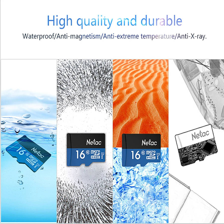 Netac P500 Class 10 16G Micro SDHC TF Flash Memory Card Data Storage UHS-1 High Speed Up to 80MB/.It's waterproof, anti-magnetism, anti-extreme temperature and anti-X-ray.