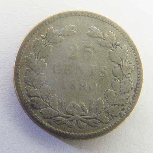 Netherlands 1890 Willem 3 - 25 cent silver fine (scarce) no dot after date