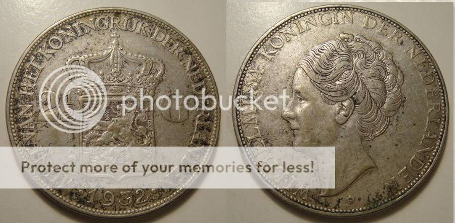 Netherlands : Silver CROWN-size Two-and-Half Gulden of 1932 (Queen Wilhelmina)