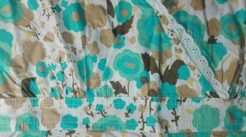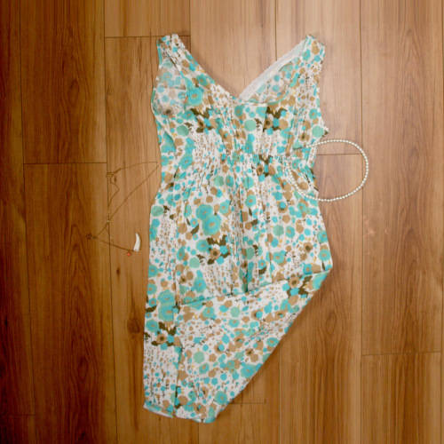 Blue, Brown and White . Floral . Dress . Lace Trimming . Size 10