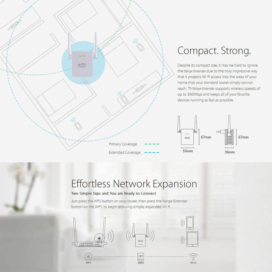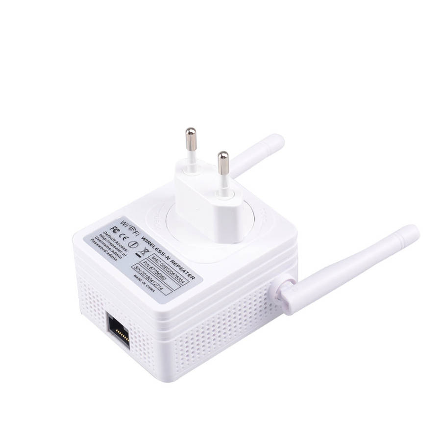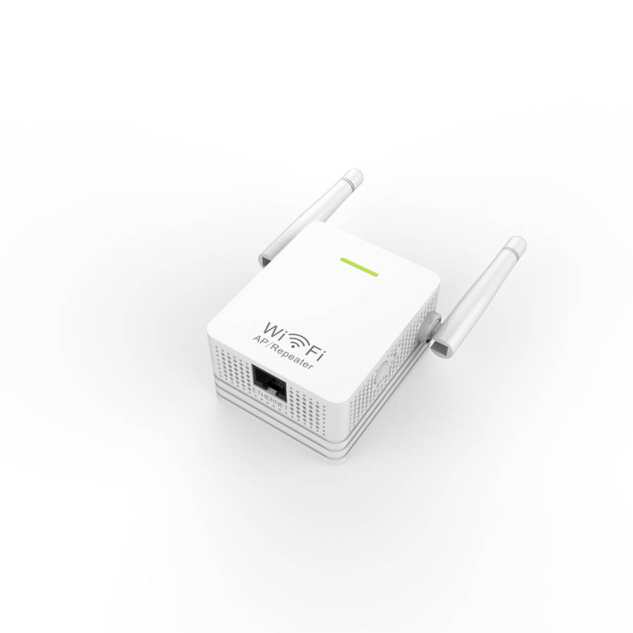 A powerful WiFi repeater with dual external antennas, which ensures strong WiFi signal and wireless coverage. It has a maximum transmission rate of up to 300Mbps. It also acts as an AP client, turning a wired network to wireless one. With this device, you can enjoy an improved WiFi signal.