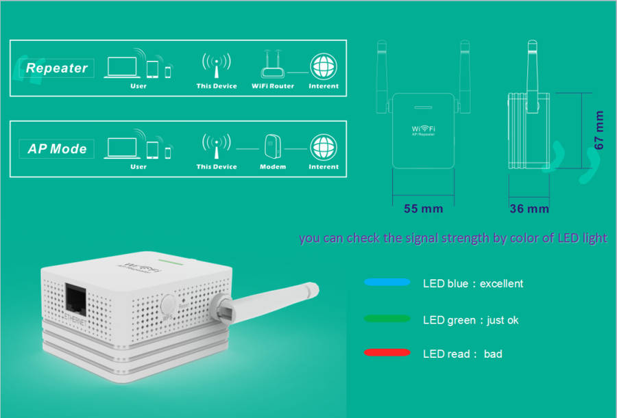 Access Point mode - Create new Wi-Fi access from your wired router for All other wireless device like cell phone, tablet, TV box and game device.