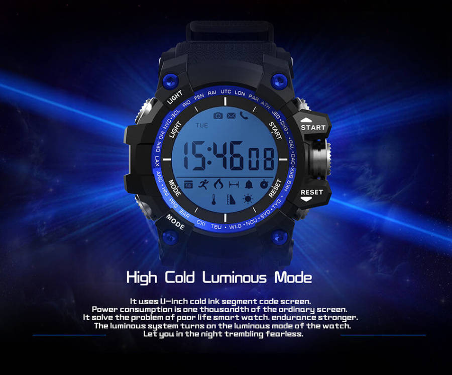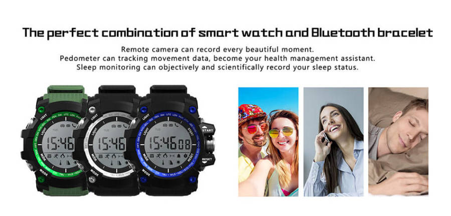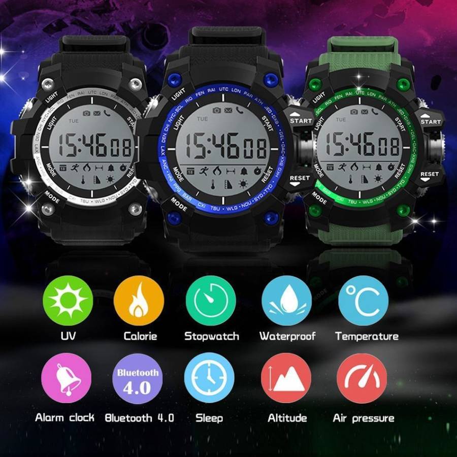 Packing a high-end pedometer, this Bluetooth sports watch is capable of delivering highly precise exercise reports covering the duration of your workout, the distance covered, number of steps taken, and calories burned. With all this information at your disposal, you’ll be able to keep accurate track of your fitness developments while furthermore, it helps you to plan your upcoming workouts in the way that benefits you most. Besides its pedometer, this outdoor gadget also features an UV meter, thermometer, altimeter, stopwatch, and calendar function making it a highly effective and multi-functional smart watch.