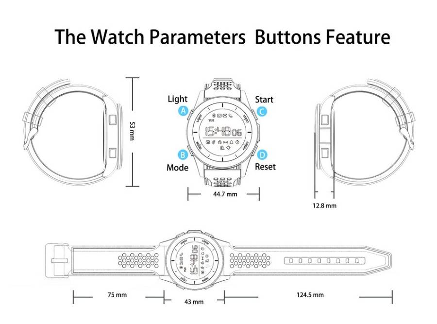The smartwatch is powered by the German Dialog DA14580 (the world’s lowest power ring chip), it has a 128 MB memory, and equipped with features such as Altitude, Air pressure, Ultraviolet radiation, Pedometer with Exercise step, calorie consumption, movement mileage record. powered by a button battery a CR 2450, that last up to 1 year.