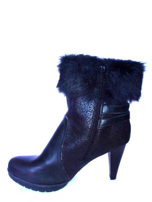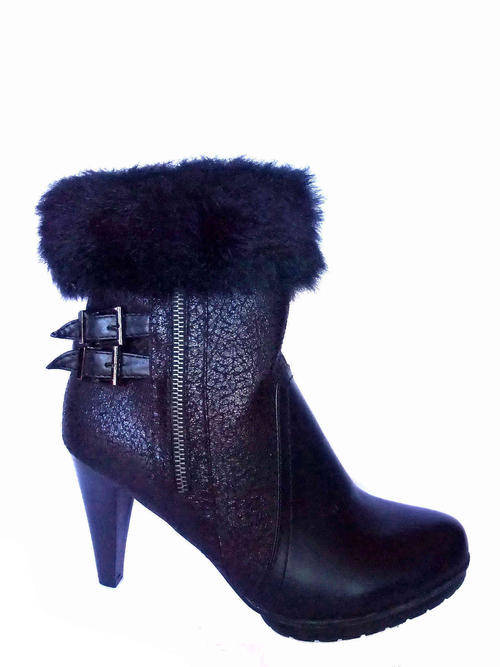 Never 2 Hot ** Fur Trim Ankle Boot Buckle Black Size 6