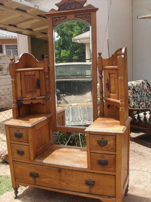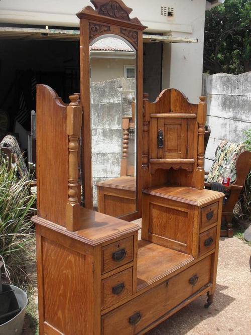 YOU'RE CHANGE TO BUY THIS LOVELY ANTIQUE DRESSER. OVERALL IN GOOD CONDITION, BURN MARK (SEE LAST PHOTO, MAYBE A CANDLE), SOME DOOR HANDLES NEEDS ATTENTION. THE BEVELLED MIRROR IS IN VERY GOOD CONDITION. HEIGHT NEARLY 2METERS AT 194 CM X 113 X 46 CM.