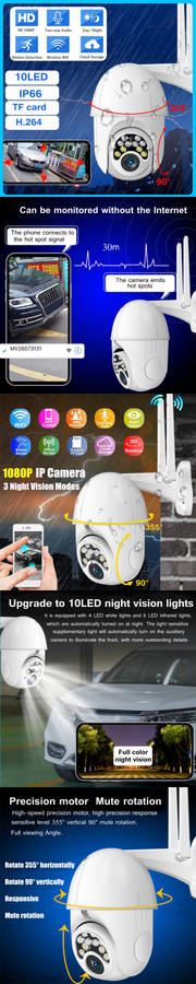 1080P WIFI IP Camera 10 LED Camera HD Outdoor Waterproof Wifi Smart Ball Machine with Power Monitoring Camera Security Network Camera