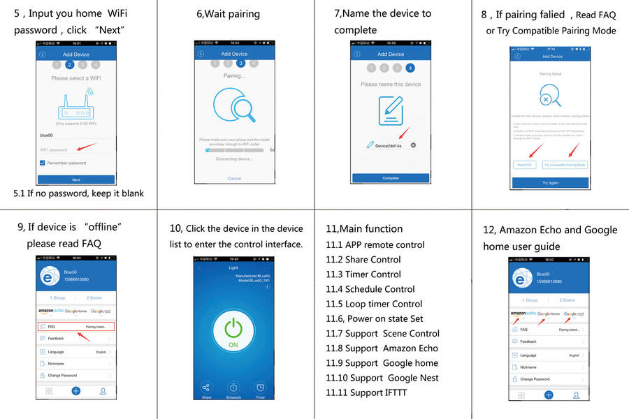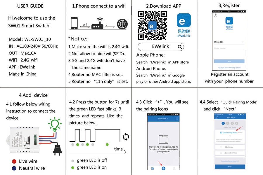 Features: -E-WeLink APP. -Download app¬ニメRegister an account¬ニメConnect to WiFi,Enter WiFi password -Remote control, Timing, energy saving, WeChat control/sharing, scene linkage. -Compatible with Amozon ECHO alexa, Google home, Tmall Elf, IFTTT