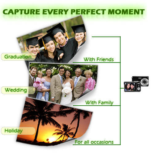 This 12 Megapixel digital camera comes with a x3 optical zoom, 8 x digital zoom that brings your subjects closer to you. In addition to the optical/digital zoom feature, this model also comes with a macro function. The macro function allows you to capture images at extreme close ups while improving the clarity, brightness and image sharpness.