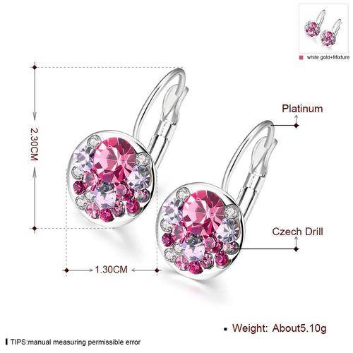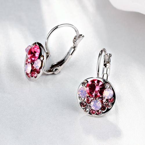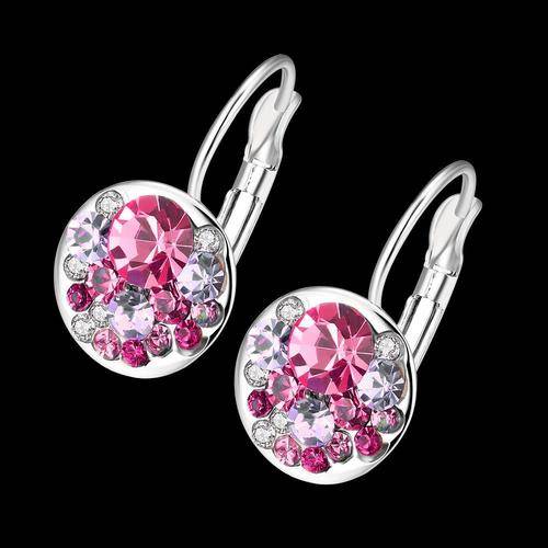 New 18K RGP in white gold, Designer ladies earrings with Genuine pink Austrian crystals