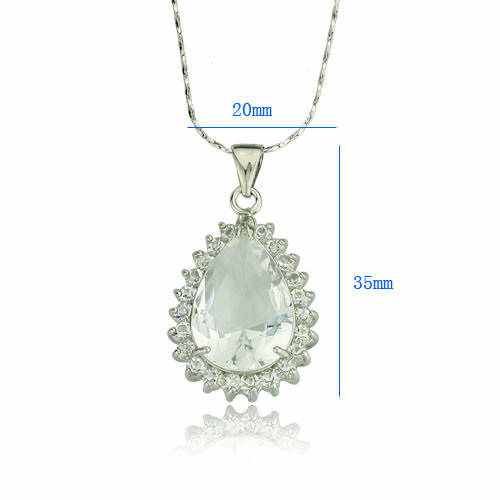 New 18K RGP in white gold, Ladies Chunky pear design pendant with huge Austrian Crystal + FREE chain