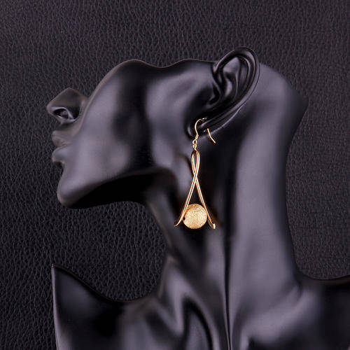 New 18K RGP in yellow gold, ladies long dangle earrings with frosting detail