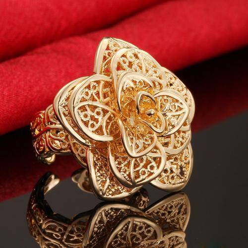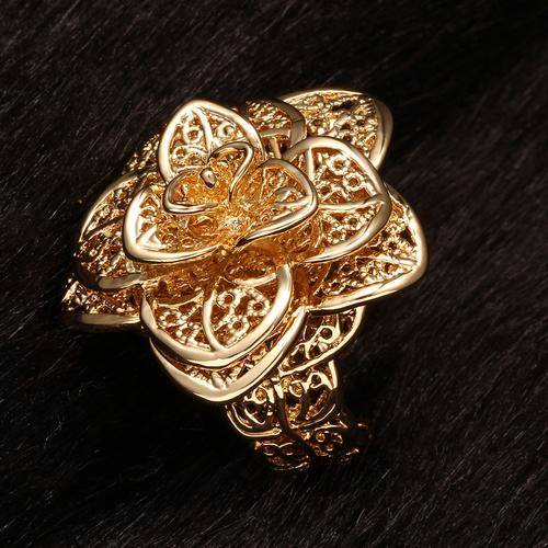 New 18K RGP Ladies chunky rose flower style ring with fine filigree detail work