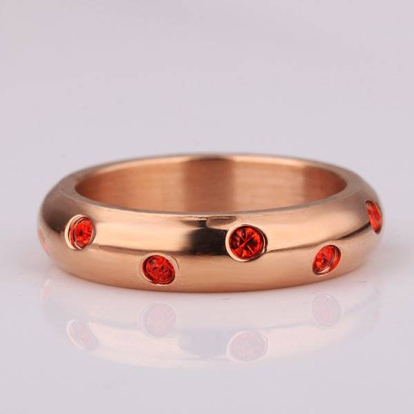 New 18k RGP rose gold band ring with red Genuine austrian crystals, A Beautiful ring