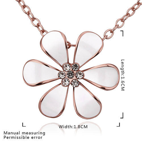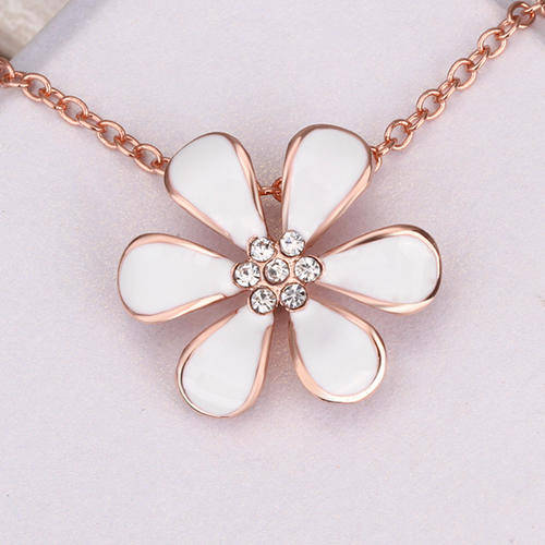 New 18K RGP rose gold Flower pendant with white detail and Genuine Austrian crystals + FREE chain