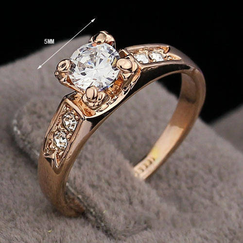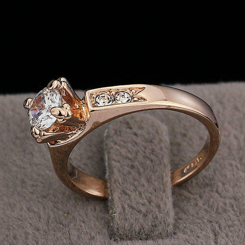 New 18K RGP rose gold ladies Engagement style ring with 1.5ct Austrian crystal and accent stones