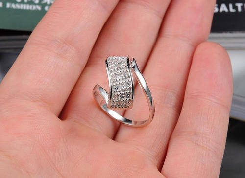 New 18K RGP white gold ladies Microset ring with AAA quality CZ, Engagement style