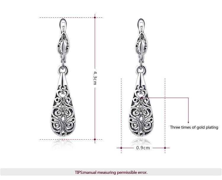 New 18K RGP white gold ladies waterdrop dangle earrings with filigree detail work