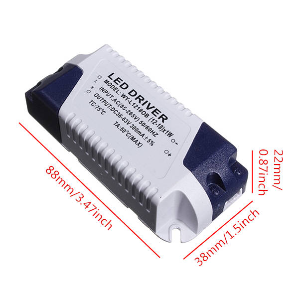 Description: * Power: 18W * Output Voltage: DC 36-63V * Output Current; 300mA * Input Voltage: AC 85 - 265V * Short circuit and overload protection * Max case temperature: As Picture Show * Max Environment temperature: - 50 - +75¬トテ * Consistent current - will double the life span of your LEDs.