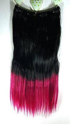 1x Black & Pink Straight Party Hair extension with 4 Clips