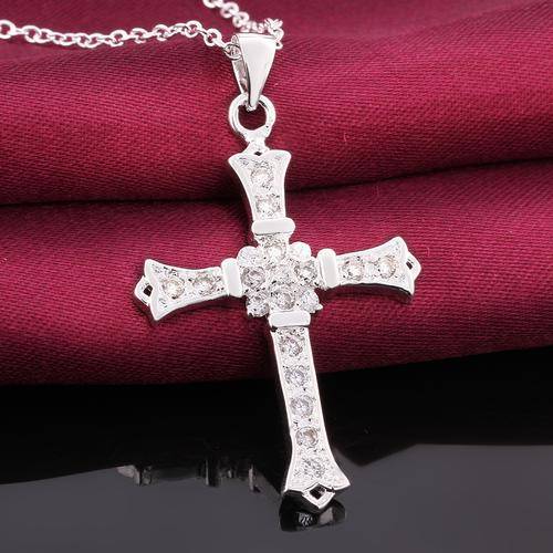 New 925 Sterling silver filled Cross pendant lined with AAA genuine crystals + FREE chain included